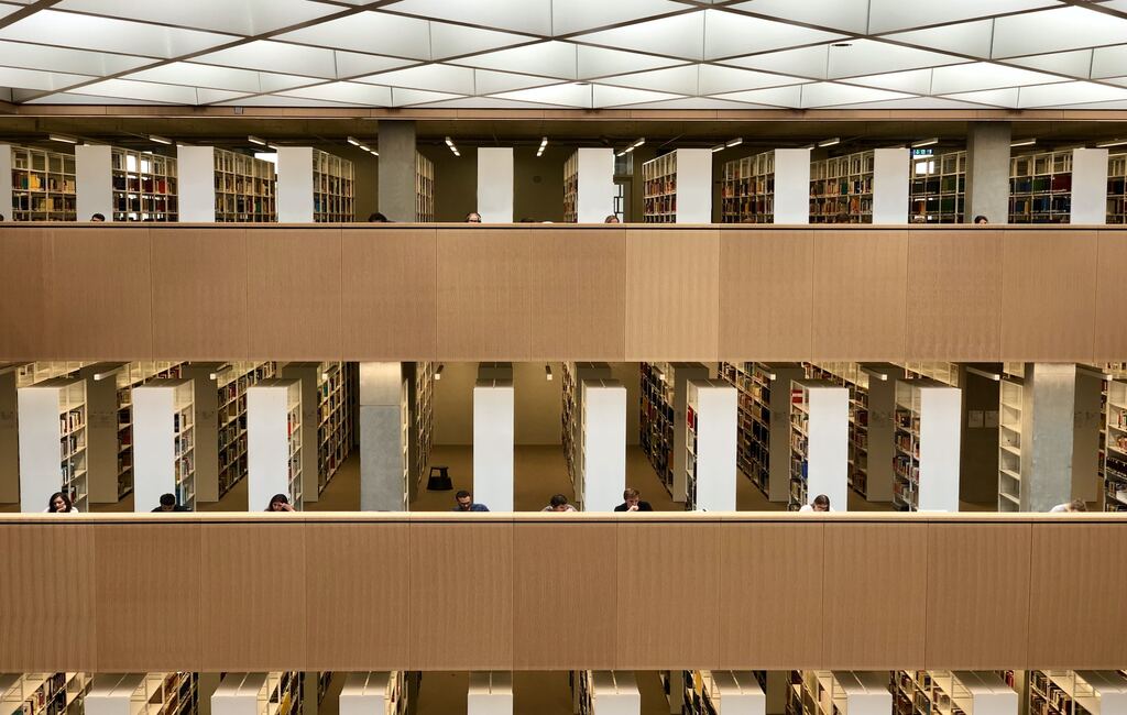 eine große Bibliothek voller Bücher.